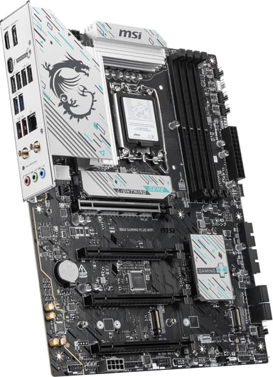 MSI B860 GAMING PLUS WIFI bundkortet byder på imponerende ydeevne med sit Intel B860 chipset, op til 256GB DDR5 fordelt på 4 DIMM slots, 3x M.2 slots og en fordybende 8-kanals lydoplevelse med ALC897, alt sammen i et elegant ATX-format.Læs mere om produktet