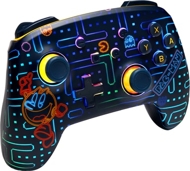 Controlleren har integrerede RGB LED'er, der lyser op for at afsløre et skjult Pac-Man-design på controllerens overflade, når det aktiveres. Den har også 4 belysningstilstande som Farvevalg, Jagt, Bølge og Sejr for at fejre dit yndlings arkadespil med stil.