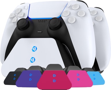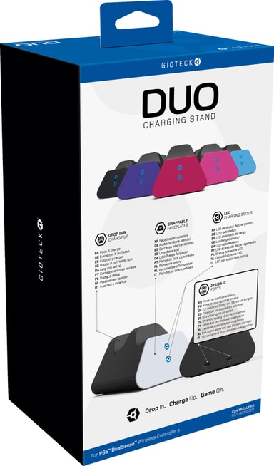 Med Gioteck Duo PlayStation 5 opladnings-stationen til controllere er du altid klar til aktion. Opladnings-stationen holder dine kontrollere opladt. Derudover byder stationen på en ekstra USB-C-port så du kan oplade flere kontrollere eller enheder. Den praktiske oplader kan oplade to kontrollere på samme tid og leverer et kompakt, slankt design med LED-indikatorer så du kan se opladnings-status. Der følger seks udskiftelige frontplader så du kan justere og matche dine kontrollere.