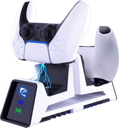 Piranha x GhostGear PlayStation universal opladeren er en dual-controller opladningsdock, der er kompatibel med PS5 og PS4. Den har magnetiske induktionspuder og LED-indikatorer til opladningsstatus, så du kan strømline dit gaming-setup.