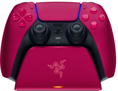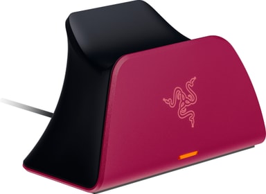 Razer Quick-opladningsstanderen til PS5 oplader din PS5 DualSense trådløse controller på under 3 timer, mens den på samme tid ser fantastisk ud og passer til din controllers farve. Den har også overbelastningsbeskyttelse og kan tilsluttes til PS5, PC eller vægstik, der sælges separat.