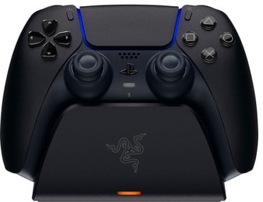 Razer Quick-opladningsstanderen til PS5 oplader din PS5 DualSense trådløse controller på under 3 timer, mens den på samme tid ser fantastisk ud og passer til din controllers farve. Den har også overbelastningsbeskyttelse og kan tilsluttes til PS5, PC eller vægstik, der sælges separat.