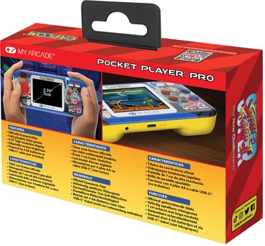 Genoplev din barndom og nyd at besejre fjenderne, My Arcade Pocket Player Street Fighter II håndholdt konsollen giver dig en klassisk arkade-oplevelse som du kan holde i hænderne. Den retro håndholdte spillekonsol er responsiv, i lommestørrelse og har en høj opløsning 2,75” skærm så, du kan nyde endeløs underholdning. Konsollen kommer med et 3.5mm hovedtelefonsstik og kører på fire AA batterier, som gør at du kan tage den med på dine rejser. Derudover kan du oplade konsollen via USB-C-porten.