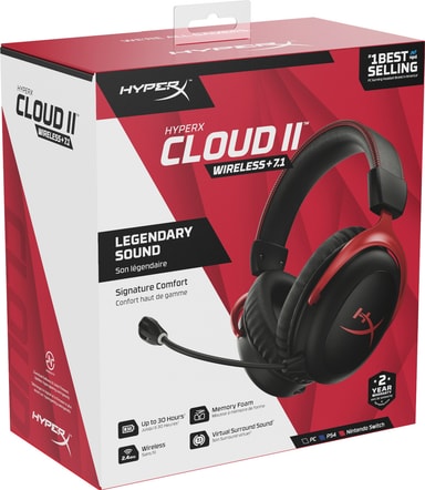 • HyperX Cloud II Wireless gaming headset (sort/rød)