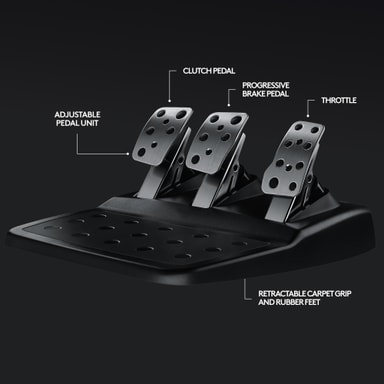 Pedaler: Den separate pedalenhed giver realistisk respons. Pedalenheden har en ikke-lineær bremsepedal.