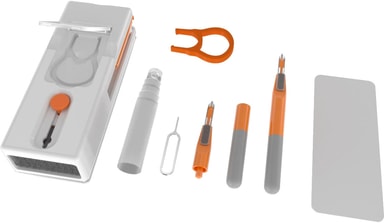 Hvert værktøj i sættet er fremstillet af materialer, der er udvalgt for deres effektivitet og sikkerhed på elektroniske enheder. Skærmpoleringskluden er fremstillet af mikrofiber i høj densitet for at rengøre skærme uden at ridse eller efterlade fnug, og linserengøringsværktøjet er fremstillet af blød silikone, der sikrer, at dine linser forbliver fri for ridser.