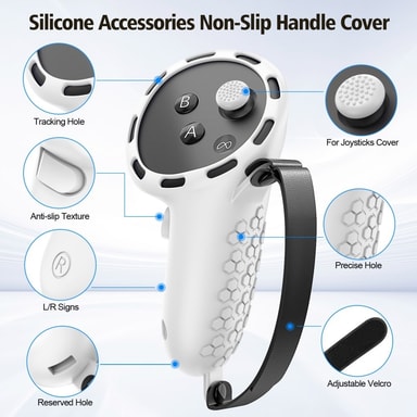 Til Meta Quest 3S silikonetilbehørssæt med VR-headsetcover / kontrolgreb / ansigtsmaske - Hvid【Komplet beskyttelse】 Silikonesæt med syv dele giver omfattende beskyttelse til dit VR-headset og dine controllere.【Perfekt pasform】 Specielt støbt design sLæs mere om produktet
