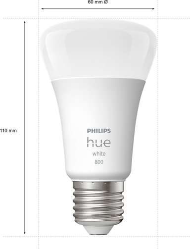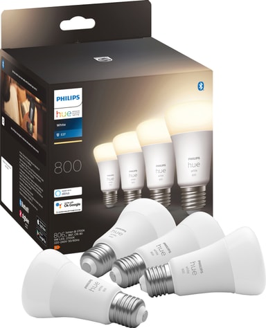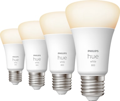 Philips Hue White 9W A60 E27 (4-pakken) lader dig tilpasse belysningen i dit hjem og skabe en levende stemning. De 4 pærer i pakken kan let betjenes og dæmpes med Philips Hue-appen.Læs mere om produktet