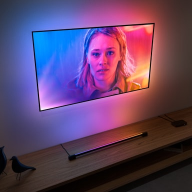 Skab det rette lys til film- eller spilaftenen med Philips Hue Play Gradient lysrøret CMP. Lysrøret synkroniserer med hvad, der sker på din fjernsynsskærm, og skaber levende farver i din stue. Lysrøret anbefales til 40’’ til 55” fjernsyn. Du skal have Hue Bridge og Hue Sync-boksen for den fulde oplevelse (sælges separat).