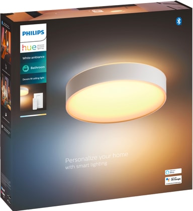Dette Phillips Hue Devere M loftslys er ideelt til dit badeværelse med varmt-koldt hvidt lys, dæmpbar funktion med en dæmpende kontakt i pakken, samt let betjening med en Philips Hue Bluetooth app.Læs mere om produktet
