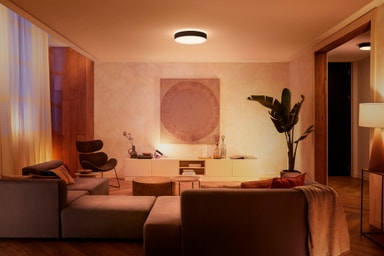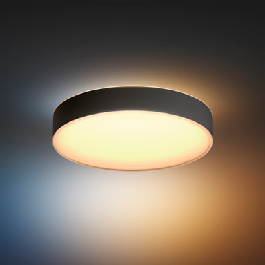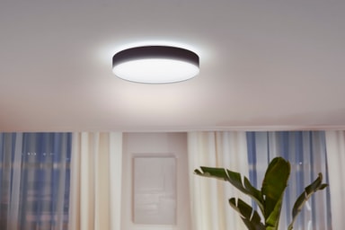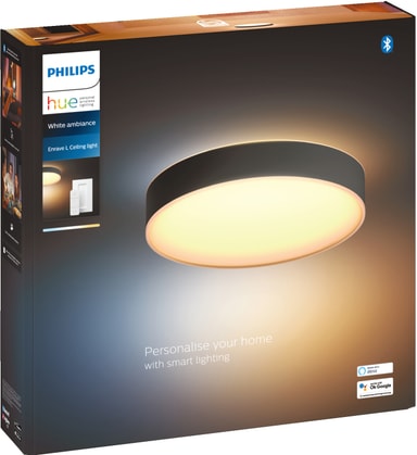 Philips Hue Enrave L loftslampen med blødt opadvent lys vil belyse dit hjem smukt. Du kan få dit ønskede lys ved at vælge mellem et bredt udvalg af energigivende kolde toner eller afslappende varme toner. Du kan betjene lyset med en dæmpende kontakt eller en Bluetooth app.