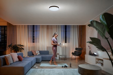 Loftslampen kommer med fire forindstillinger. Vælg mellem to forskellige kølige indstillinger (Energize og Concentrate), når du har brug for et energiboost eller for at koncentrere dig. Når du har brug for ro i hovedet, vælg mellem to varme indstillinger (Read eller Relax).