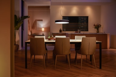 Tilkøb Hue Bridge, som sælges separat, og få endnu flere funktioner og fordele. Den lader dig tilføje op til 50 lys og planlægge rutiner. Med Hue Bridge har du fuld kontrol over smart-lysene i dit hjem.