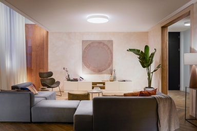 Loftslampen kommer med fire forindstillinger. Vælg mellem to forskellige kølige indstillinger (Energize og Concentrate), når du har brug for et energiboost eller for at koncentrere dig. Når du har brug for ro i hovedet, vælg mellem to varme indstillinger (Read eller Relax).