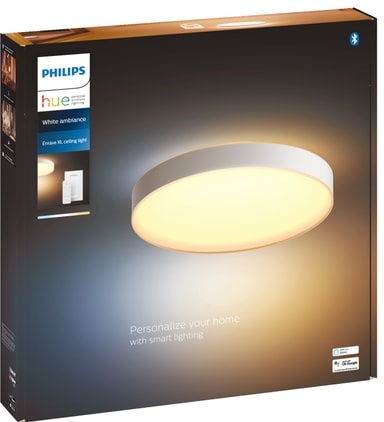 Løft dit hjem op på et nyt niveau og skab en atmosfære, som vil passe til enhver lejlighed med Philips Hue Enrave XL loftslampen. Dette ekstrastore lysarmatur vil passe perfekt ind i ethvert større rum i dit hjem. Den giver dig 50.000 grader af varmt til koldt hvidt lys, en dæmpende funktion og 4 smarte forindstillinger, som vil hjælpe dig med dine daglige opgaver. Du kan nemt betjene lyset med en Bluetooth app eller en dæmpende kontakt.