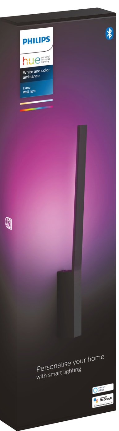 Giv dit hjem farve og et moderne touch med denne Philips Hue Liane stemningsvæglampe 12W 24V. Du får utallige farvemuligheder, 4 forudinstallerede lysopskrifter og mange skygger af hvidt lys. Lampen betjenes via en smartphone-app eller kan forbindes til Philips Hue Bridge.