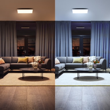 Med justerbar hvid ambiance kan du skifte mellem varme og kølige toner, så de passer til ethvert øjeblik – skarpt til fokus, blødt til afslapning. Panelet leverer afbalanceret, blændfrit lys, der øger komfort og atmosfære.