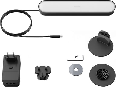 Philips Hue Play lysbar enkeltpakken vil tilføje nye dimensioner til din filmoplevelse. Du monterer barer lysbaren bag dit TV og tilslutter den til din smartphone via den gratis app, hvorefter du kan nyde at se dine vægge blive oplyst i smukke farver. Det eneste du skal bruge for at få lampen til at virke er en Philips Hue Bridge og den gratis app.