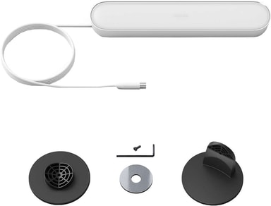 Lysbaren sælges uden strømforyning, men kan forbindes til strømforsyningen til en Hue Play lysbar, du allerede ejer. Strømforsyningen har kapacitet til op til 3 lysbarer, så pladsen omkring dit TV ikke flyder med ledninger.