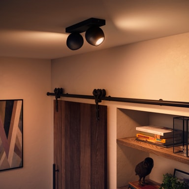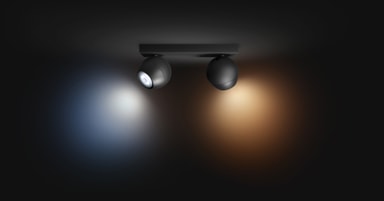 Philips Hue Buckram spotlyset 2x5W er 2 justerbare spotlys i 1. Nyd nem betjening via Bluetooth, varmt-til-koldt hvidt lys og en inkluderet dæmpende kontakt. Oplev den ideelle atmosfære til enhver lejlighed.Læs mere om produktet