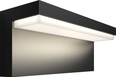 Philips Hue Nyro væglampen lyser op på din terasse. Med dens 16 millioner farver, dæmperkontakten og Philips Hue appen kan du skabe den helt rigtige lyssætning. Væglampen har IP44 certificering.Læs mere om produktet