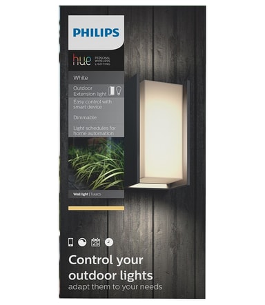 Gør dit hjem mere hyggeligt med Philips Hue Turaco væglampen, der lyser op ved poolen eller på vejen fra dit hus til garagen. Justér indstillingerne efter dine behov og sæt stemningen.Læs mere om produktet