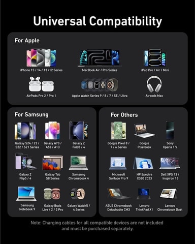 • Når to USB-C-porte bruges samtidig, kan hver levere op til 100W. Brug kabler med E-Marker-chip for at opnå maksimal effekt.
