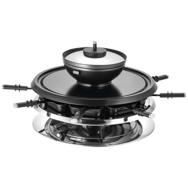 Har du lyst til fondue? Eller raclette? På bøffer fra Varme sten eller Gambas fra den non-stick-behandlede grillplade? Med RACLETTE Multi 4in1 opfyldes alle kulinariske ønsker for op til otte personer! Ud over den antivedhæftende fonduegryde med låg,Læs mere om produktet