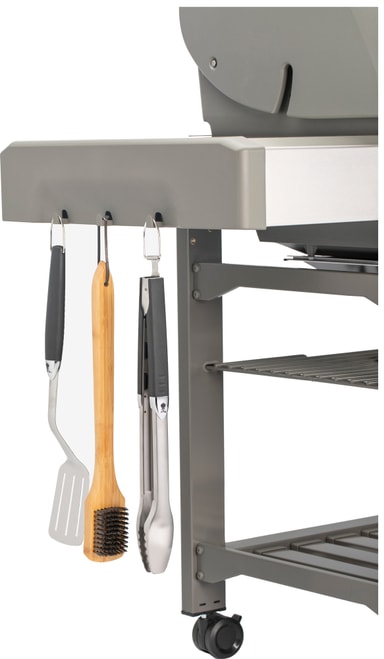 Lad dig ikke begrænse af størrelsen af grillområdet. Denne grill har 2 sideborde, som giver en ideel plads til udarbejdelse af forskellige småretter, eller de kan fungere som ekstra borde.