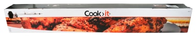 Universalt rotisseri, som passer til alle gængse gasgrill med 3 eller 4 brændere samt Cadac gasgrill med 3 brændere. Rotisserispyddet er fremstillet i kraftigt 10×10 mm rustfrit stål. Passer til grillbokse med en bredde på 550-700 mm. Alle dele er udført i rustfrit stål. Maks. temperatur: 300 grader. Alle ståldele tåler maskinopvask. Rotisseriet sørger for, at kødet roterer under grillning, så du opnår en fantastisk overflade på dit kød. Kyllinger bliver dejligt saftige, skindet bliver lækkert sprødt, og du får med garanti succes med både juleanden og flæskestegen på rotisseriet. Indhold: Spyd, længde: 820 mm 2 stk. gafler til at fastholde kødet Universalbeslag til montering på grillen 1 stk. afstandsring til tilpasning af rotisseriet på grillen Kraftig 230 V-motor med den korrekte omdrejningshastighed på 2,4 o/min.
