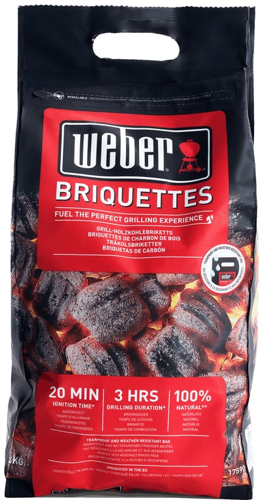 Giv din grill effektivt brændstof og vær klar til at grille på kun 20 minutter. Med Weber briketter 17590 kan du nyde grillsæsonen til fulde. Da de er lavet af træaffald, er Weber briketter den perfekte løsning til miljøbevidste mennesker. Med sin innovative pudeform vil briketterne levere perfekt grilltemperatur på kun 20 minutter, hvilket sparer dig både tid og energi. Den genlukkelige pose er lavet af vandafvisende genbrugsmaterialer, så du kan holde dine briketter tørre og klare til at blive brugt til din næste grillaften.