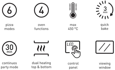 • 6 pizzafunktioner, 4 ovnfunktioner