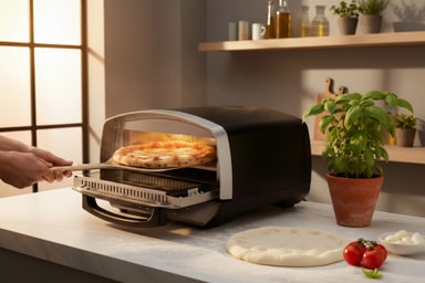 Designet til at bage en hel 33 cm pizza, er denne ovn perfekt til både individuelle måltider og større selskaber. Med flere tilberedningsfunktioner håndterer den uden besvær forskellige pizzavarianter - herunder tynd bund, pan, napolitansk og New York. Den understøtter også alsidige ovnfunktioner.