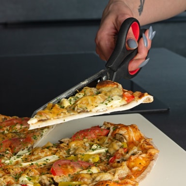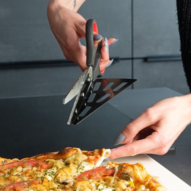 Takket være den aftagelige spatel kan pizzasaksen også bruges som en almindelig saks og er derfor meget alsidig. En god gadget til enhver pizzaelsker og en sjov gaveidé.