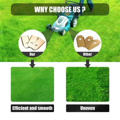 KVALITET: De knivskarpe knive er nemme at udskifte og kan nemt skiftes, hvis det er nødvendigt. Det betyder, at din plæneklipper kan fortsætte med at klippe græsset effektivt, rent og præcist i fremtiden!