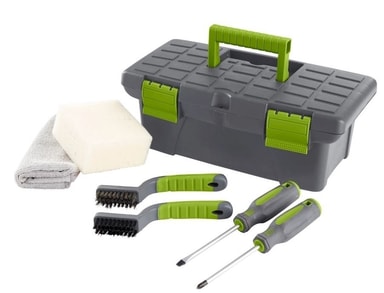 Vare sig du ska byta klippknivar eller behöver rengöra din robotgräsklippare, så är Grouwns verktygslåda med hjälpmedel den perfekta lösningen för att ha allt på samma plats.Förvaringslådan innehåller