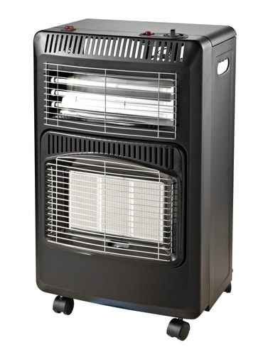 Sammenklappelig gasvarmeovn med slange og regulator Passer til G30 buton/propan-gasflasker op til 11 kg Gastryk: 30 mbar Med 3 stk. infrarøde varmelegemer, indbygget elektrisk varmeblæser, elektronisk tænding og væltesikring 3 varmetrin ved gasdrift: 1,5/2,8/4,2 kW Gasforbrug: 110/200/305 g/time Passer til rum fra 20-80 m2 Med hjul Farve: Koksgrå med kromrist Godkendelser: CE/KIWA