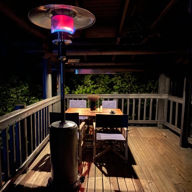 Denne meget effektive terrassevarmeren dekker et stort område, og er utstyrt med rustfri brenner og piezotenner.