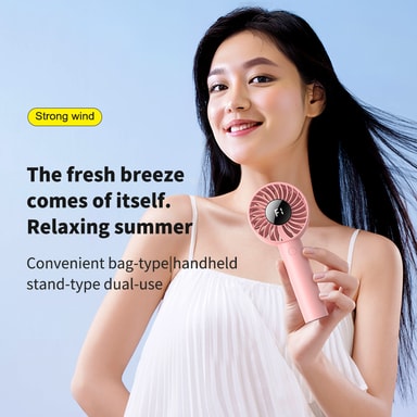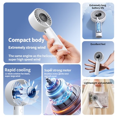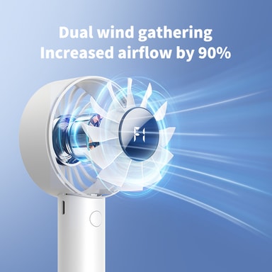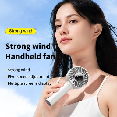 Kraftig & justerbar: Denne håndholdte ventilator er udstyret med en højtydende motor og leverer en forfriskende brise med 5 justerbare hastighedsindstillinger. Vælg mellem en mild luftstrøm til en kraftig vindstød, der passer til dine præferencer og den omgivende temperatur.