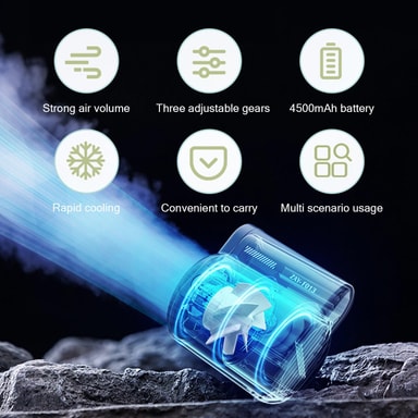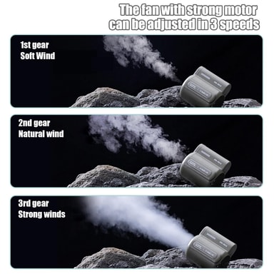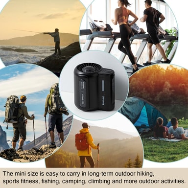 Miniventilatoren er nem at bære og perfekt til vandreture, træning, fiskeri, camping, klatring og andre udendørsaktiviteter.