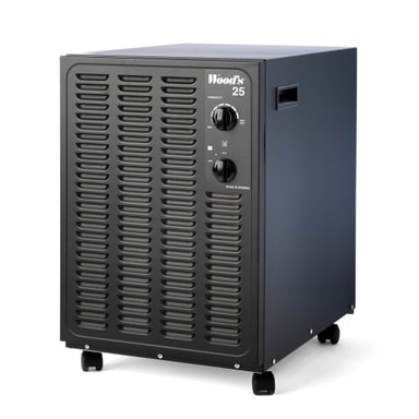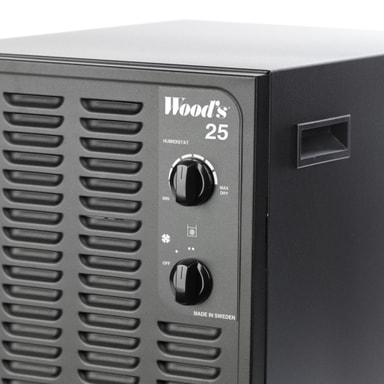 Woods affugteren SW25B har en 11,4 liters vandtank og en affugtningskapacitet på 13,5 liter om dagen. Den er velegnet til små til mellemstore lukkede rum op til 90 m², såsom garager, kældre og lofter.Læs mere om produktet