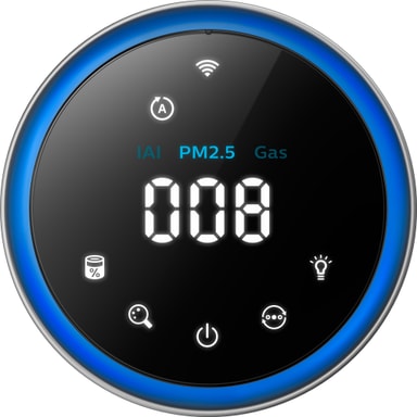 Enheden har en lysring, en simpel 4-farvet skærmring for et godt overblik over indstillingerne samt luftkvaliteten i rummet.