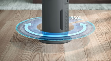 Luftrenseren har en CADR (Clean Air Delivery Rate) på 270 m³/t og en 350-graders luftgennemstrømning, der sikrer grundig cirkulation til alle hjørner af rummet.