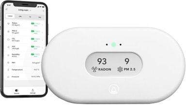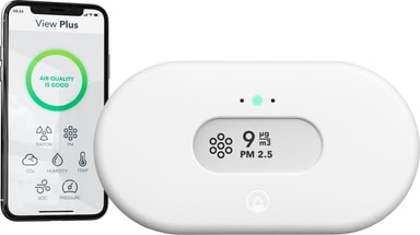 Vi tilbringer omkring 90 % af vores tid indendørs. View Plus fortæller dig, hvad der er i luften. Omfattende enhed til overvågning af luftkvaliteten med 7 sensorer for radongas, partikelforurening (PM2,5), kuldioxid (CO2), VOC (luftbårne kemikalier), fugtighed, temperatur og lufttryk. Velegnet til køkken og opholdsrum, hvor familien er samlet.