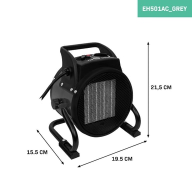 Denne varmeblæser er lille i omvang, men stor i varme effekt. Med en størrelse på kun: bred: 19.5 - dyb:15.5 - høj: 21.5 og en effekt på op til 2000W er denne varmeblæser en nem, anvendelig og effektiv