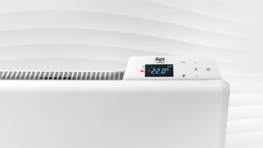 Apt elektrisk panelradiator 1000W er en slank, vægmonteret varmer designet til små rum på op til 12 m². Den har et X-formet varmeelement i aluminium, børnesikring og overophedningsbeskyttelse.Læs mere om produktet