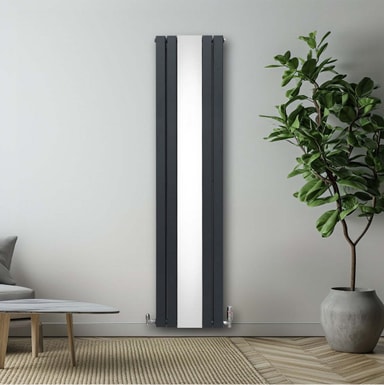 Infuser varme i dit hjem med vores banebrydende lodrette fladskærmsradiator i antracitgrå med et elegant centralt spejl - en perfekt blanding af tidløs elegance og moderne effektivitet.