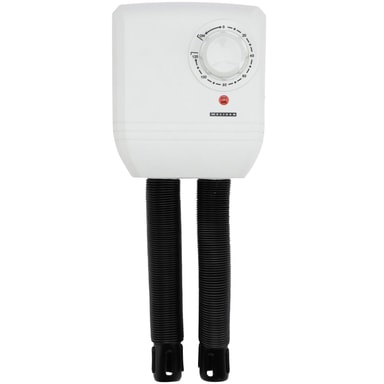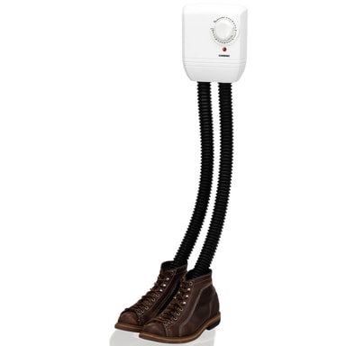 Skotørreren har to fleksible slanger og leveres med en justerbar timer på 2 timer. Den har en effekt på 250 watt.
