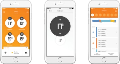 Netatmo Energy-app: Med denne app til din smart enhed kan du styre temperaturerne i dit hjem, rum-for-rum, fra din seng eller et hvilket som helst andet sted i verden du befinder dig. Den lader dig planlægge opvarmningen mere effektivt takket være Energy Savings Report. Du kan downloade appen fra App Store eller Google Play.