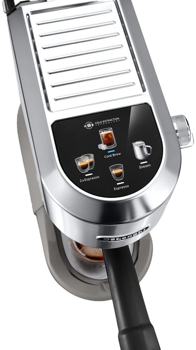 Denne DeLonghi Dedica espressomaskine EC890.M på 1450 watt kombinerer varm og kold brygning med Cold Extraction-teknologi til hurtig koldbrygning og fyldig espresso. My LatteArt-dampstaven skaber silkeblødt mikroskum til mælkedrikke i baristastil, mens den intuitive touch-skærm med farvede ikoner gør anvendelse nem.